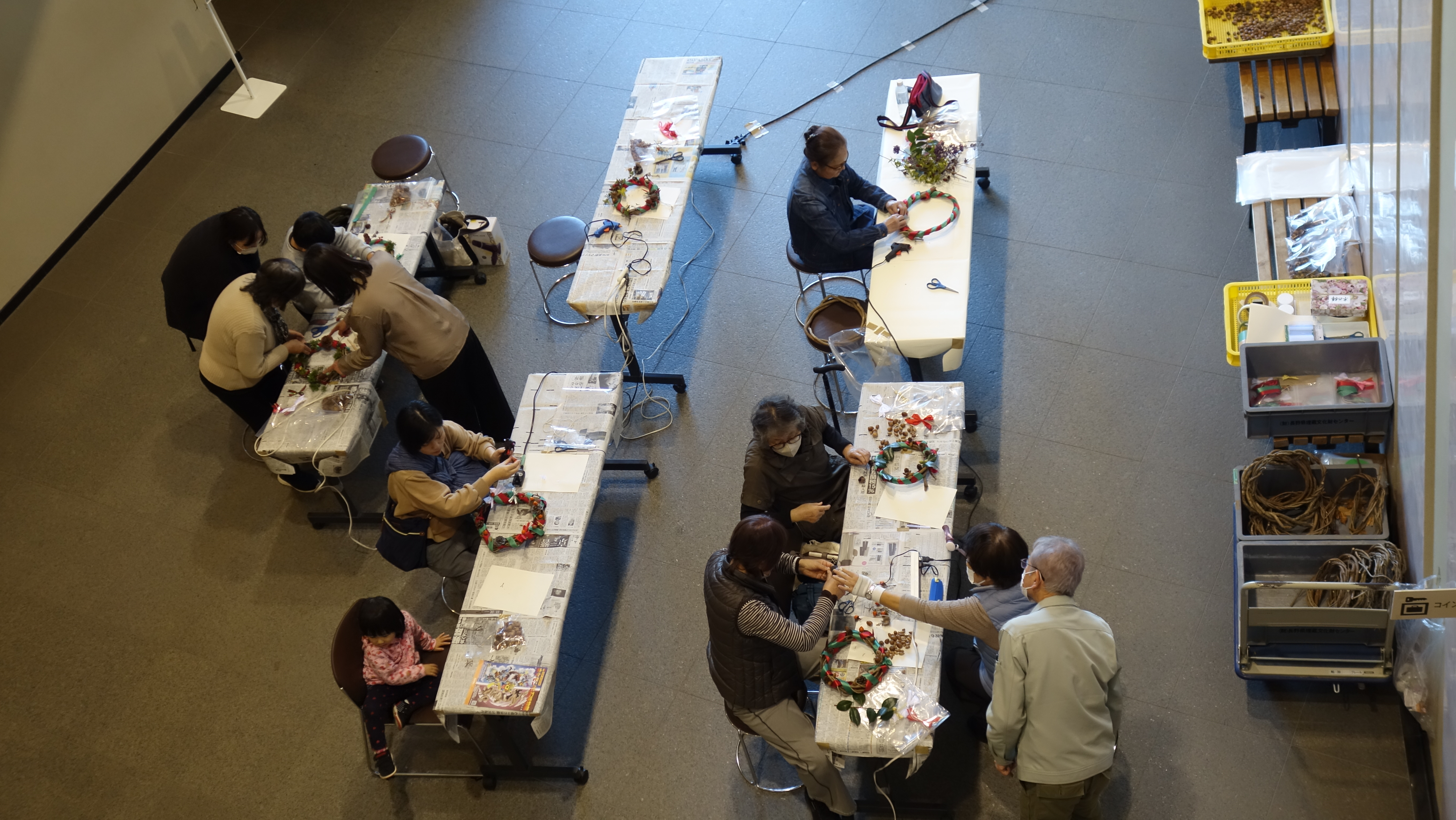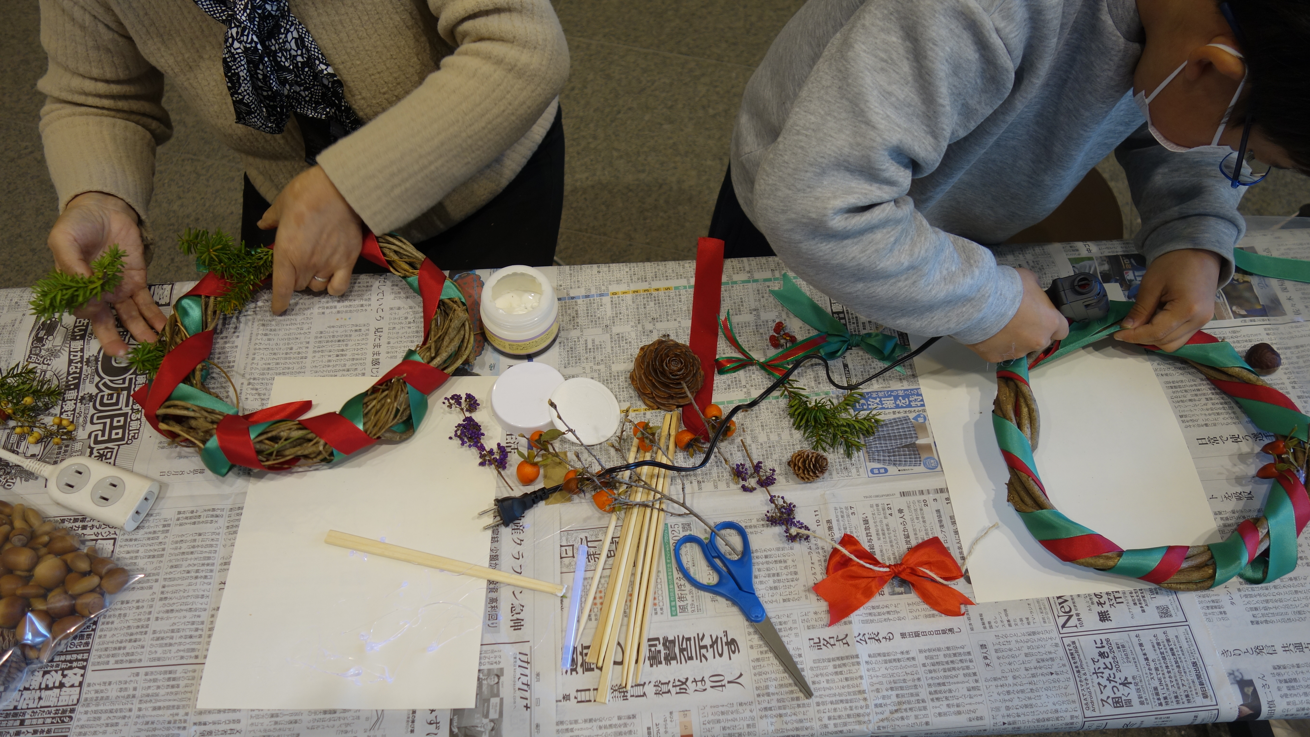 少し肌寒い日でしたが、多くの方に参加していただき、たくさんの個性豊かなリースが作られました。
