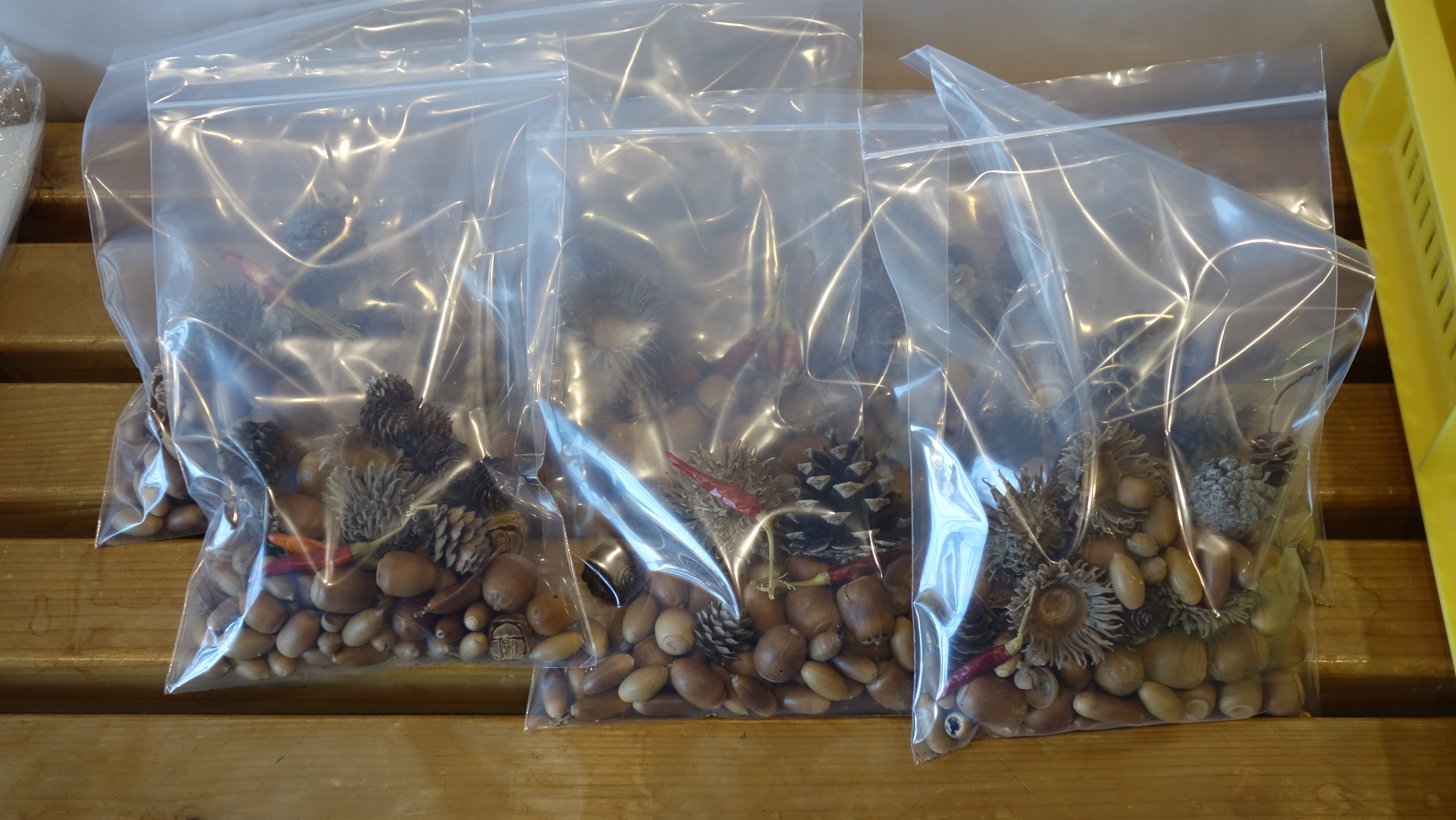 飾りつけの木の実も、職員があちこちへ探しに行って集めました。