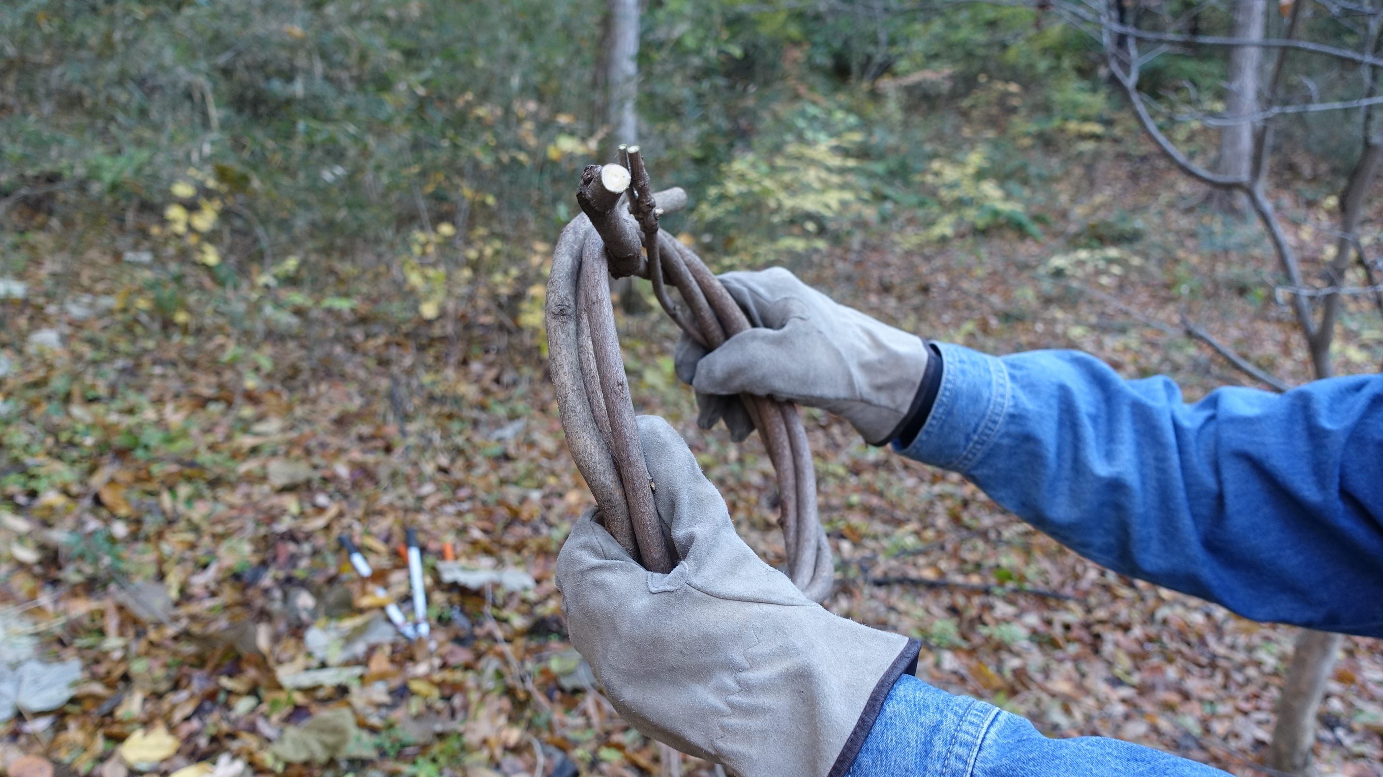 土台となるフジヅルは、天然の素材を使い、ひとつひとつ手作業でリースの形にしています。