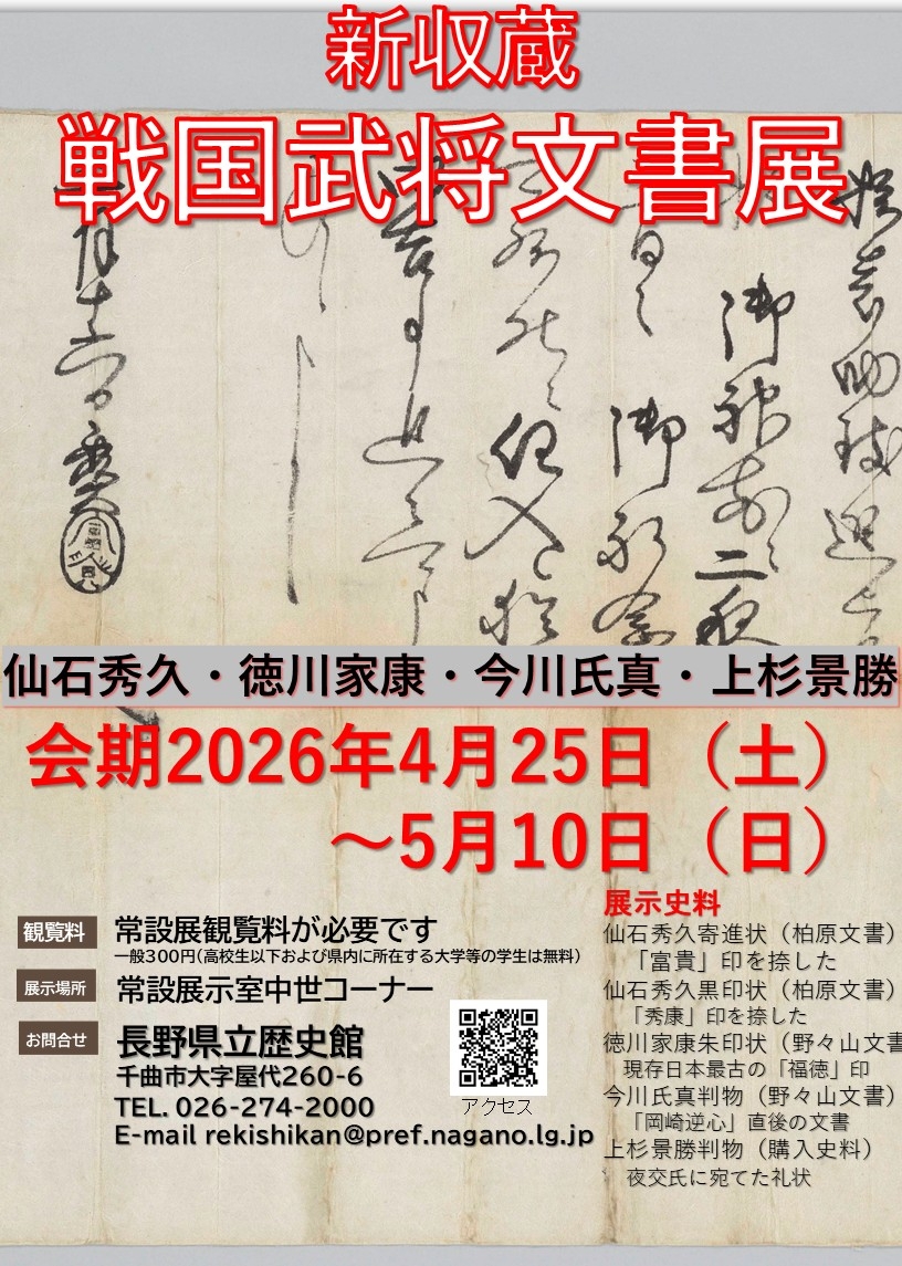 場所 千曲市屋代260-6県立歴史館 常設展示室(観覧料大人300円)