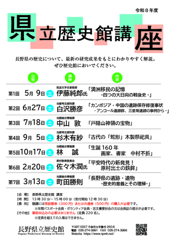 | お問い合わせ | 長野県立歴史館総合情報課(講座担当) ℡026-274-3991 |