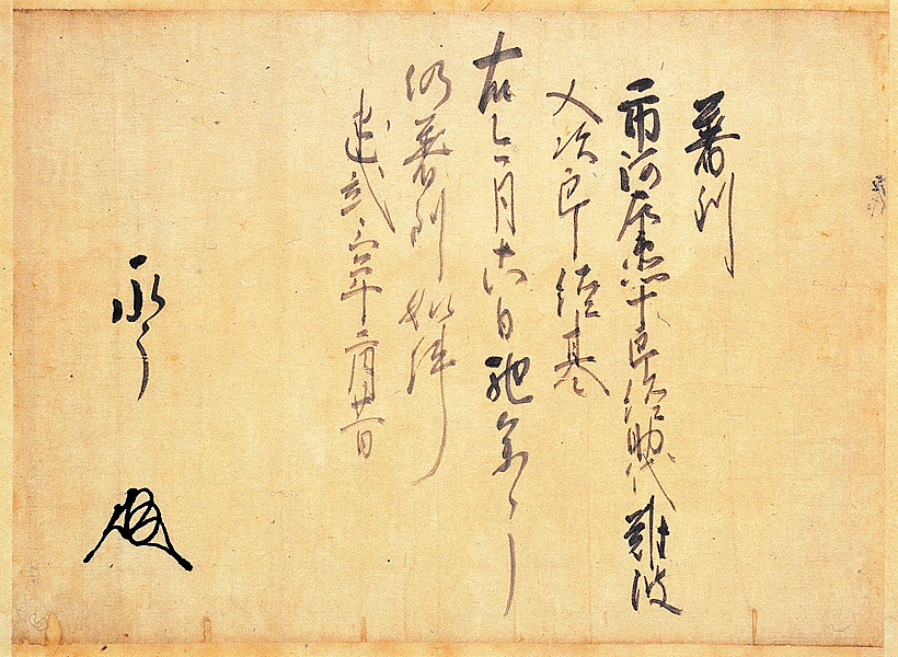 | 説明 | 市河経助の代である難波経基が、2月18日に小笠原貞宗の軍に参陣したことを上申し、小笠原貞宗の証判を得た着到状。同月23日付けの軍忠状(072・073・074)によって、経助が村上信貞と小笠原貞宗の追討軍に加わり、同月15日以降の麻績での合戦に参戦し村上信貞らの証判を得ていることが知られる。074の軍忠状では追討軍の将が村上信貞と小笠原貞宗の代兼経となっているので、あるいは同月15日の麻績十日市場での合戦後、小笠原貞宗が村上信貞と別行動をとなったため、経助本人は村上信貞軍に残り、小笠原貞宗のもとには家臣の難波経基を参陣させたとも考えられる。 |